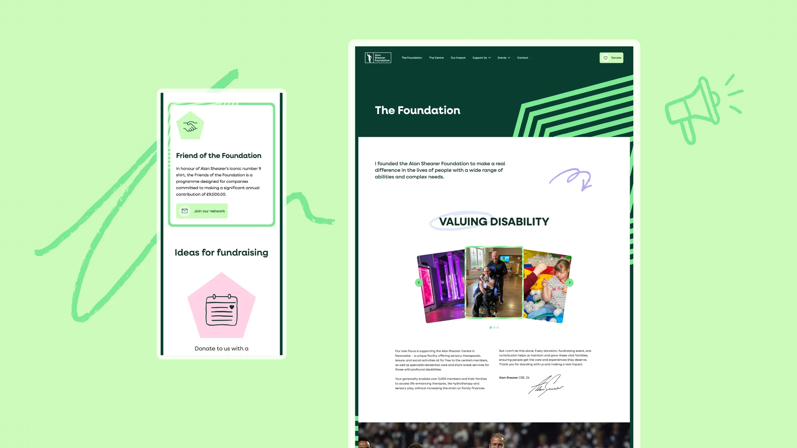 We collaborated with the Alan Shearer Foundation to rethink how the charity communicates and engages with its audience. Through detailed research and creative ideation, we reshaped the brand and its digital presence to make it feel bold, warm and engaging whilst ensuring accessibility and inclusivity were at the heart of every conversation.