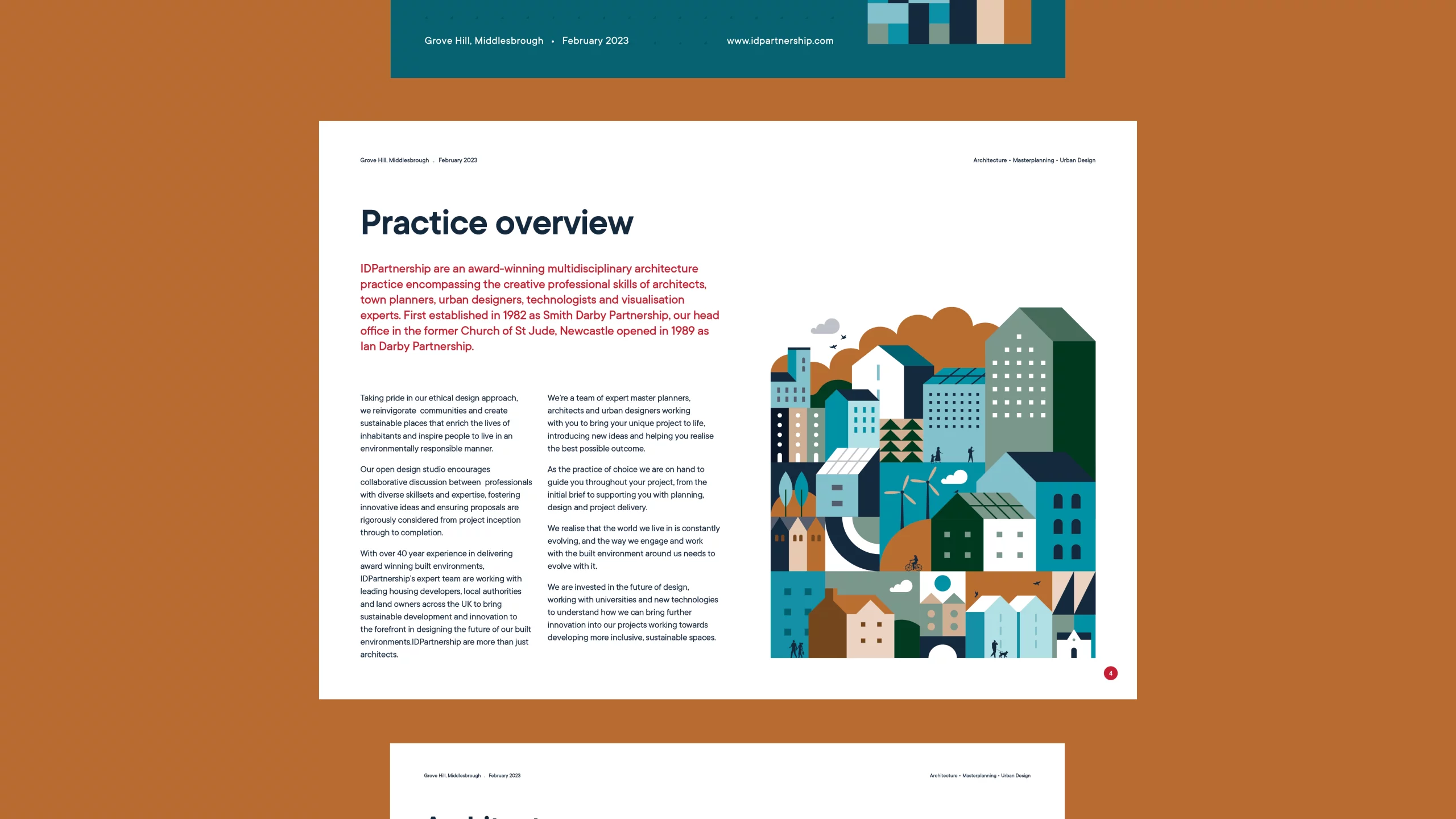 IDP is a multidisciplinary architectural practice based in the North of England, delivering innovative design solutions across a variety of sectors. As the practice entered the next stage of its development, they wanted a refreshed brand that reflected their expertise and creative approach. Drawing inspiration from their workspace and hand-drawn site plans, we updated the brand marque, refined the brand assets, and developed an illustrative visual style. This approach was applied across all documentation, ensuring a consistent, cohesive brand presence throughout the practice’s day-to-day communications.